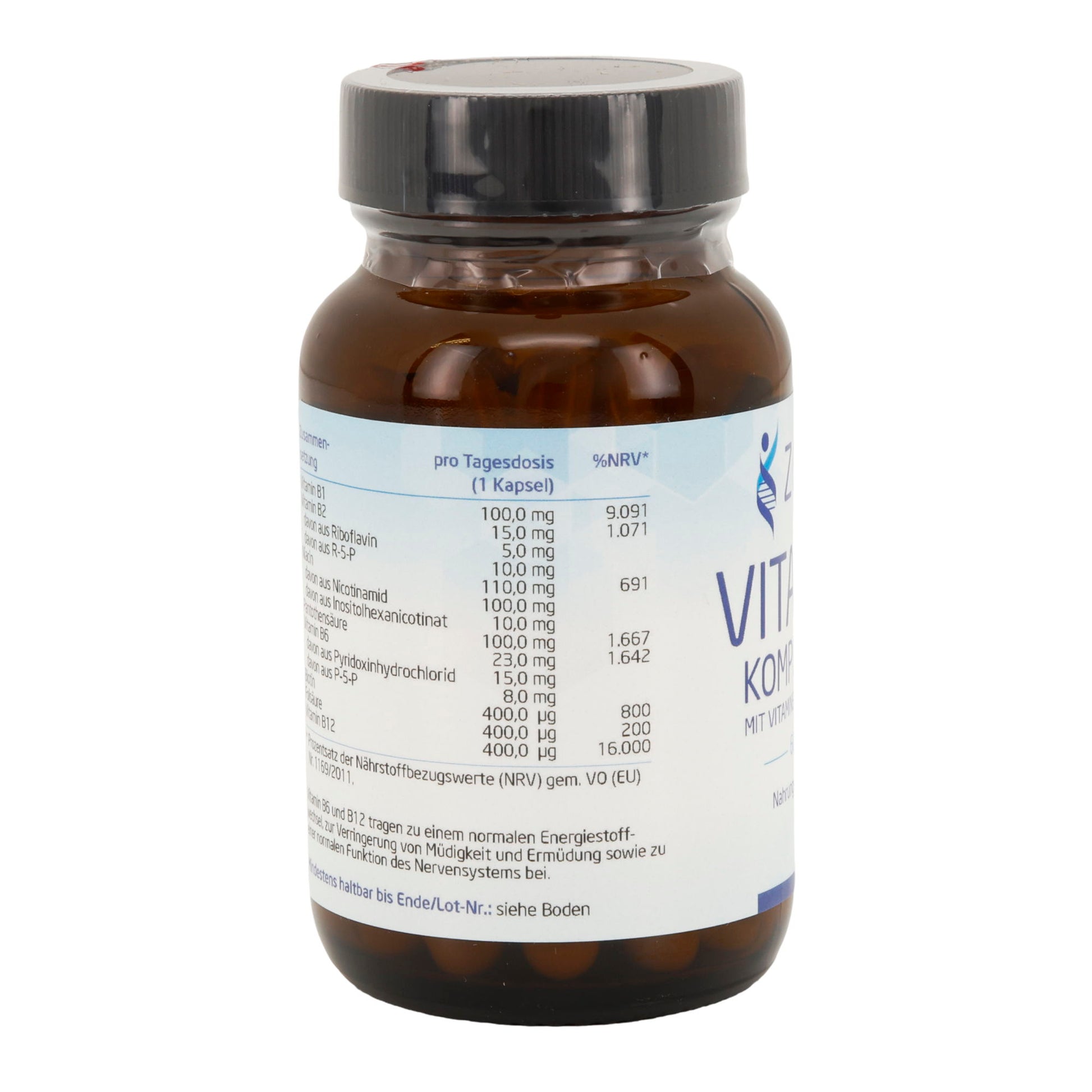 Zutaten Thiaminhydrochlorid, Calcium-D-pantothenat, Nicotinamid, Überzugsmittel: Hydroxypropylmethylcellulose (pflanzliche Kapselhülle), Pyridoxinhydrochlorid, Riboflavin-5′-phosphat Natrium (R-5-P), Inositolhexanicotinat, Pyridoxal-5′-phosphat (P-5-P), Riboflavin, Calcium-L-methylfolat (5-MTHF), D-Biotin, Methylcobalamin. Zusammensetzung pro Tagesdosis (1 Kapsel) Inhaltsstoff Menge %NRV* Vitamin B1 (Thiaminhydrochlorid) 100,0 mg 9.091% Vitamin B2 (Riboflavin) 5,0 mg 357%...
